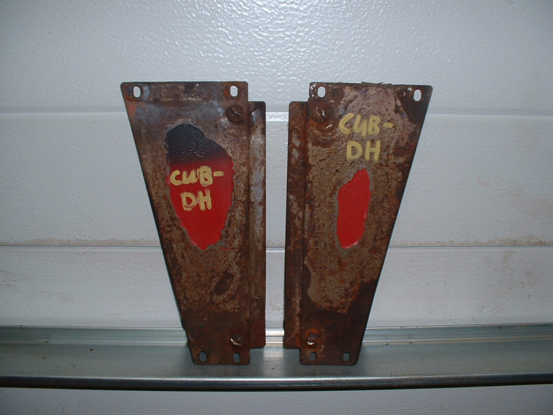 Farmall Cub grill doglegs that are drilled for the LOBOY emblems, $50.00 for the pair