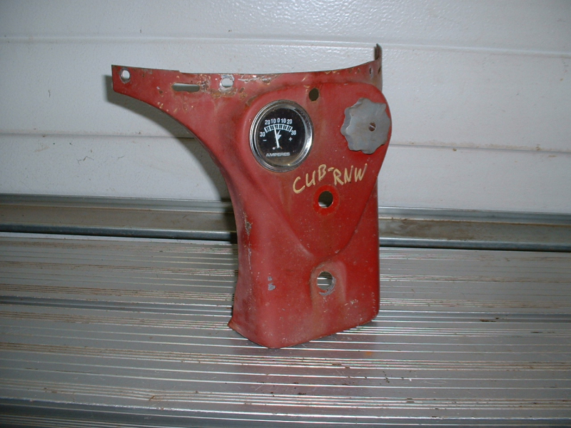 Farmall Cub short ear dash assembly. Sold as shown with cracks at mounting base. Gauge and switch working condition unknown, $35.00