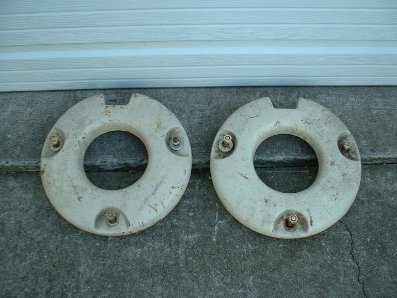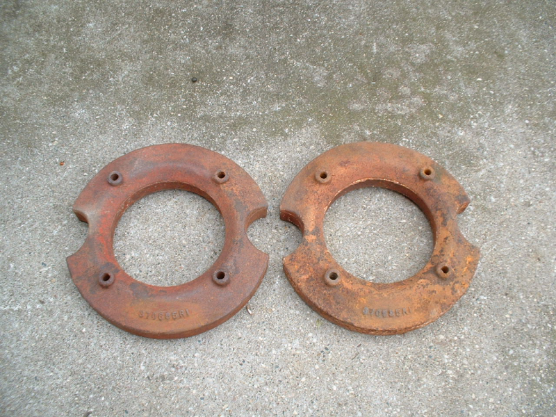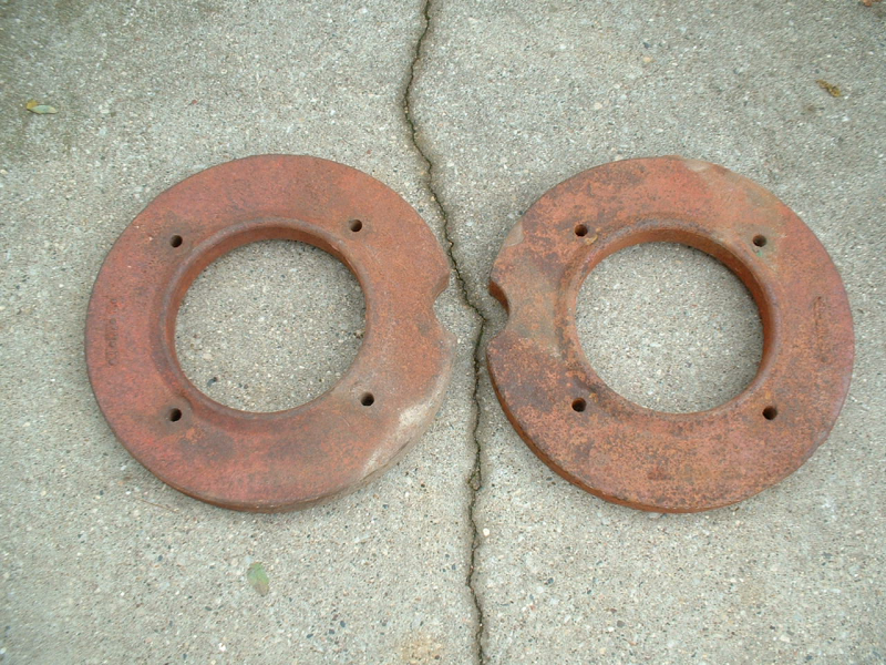 Pair of Farmall 6788-D front wheel weights fitting A, Super A, B, BN, C, Super C, H, Super H, M, Super M, Super MTA, 200, 230, 300-350, 400-450, etc, $275.00 per pair with 11 pair available...