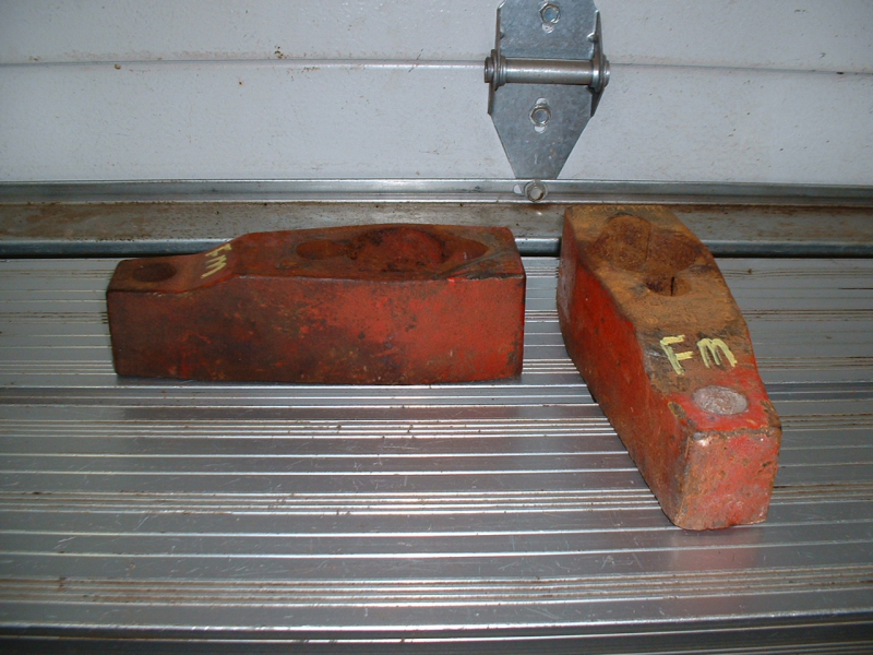 Farmall C through 230 front frame weights. IH part numbers 361158R1 and 361159R1, weigh 80 pounds per side, $1250.00