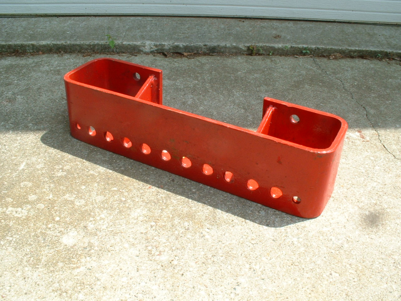 Farmall or IH 10 hole front suitcase weight mounting bracket. Bracket is 23” wide and uses a 16” x 2 ¾” center to center mounting hole spacing. Fits Farmall 460 and larger...
